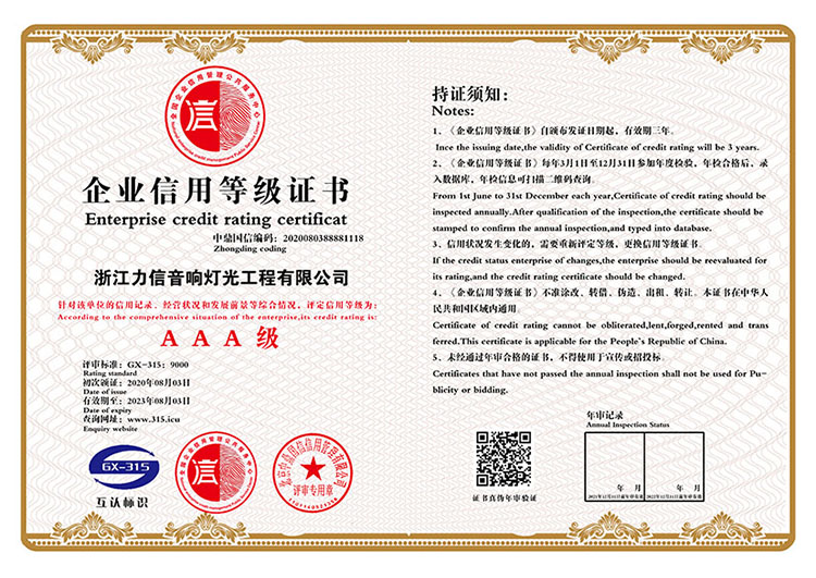 企业信用等级证书AAA级