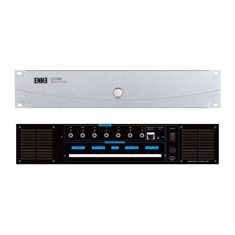 单通道功率1 :200W/8Ω、:400W/4Ω,共7个通道输出;频率响应 :20 Hz - 75 KHz,+1/‐3dB,总谐波失真 :≤ 0.08%(1 KHz),总谐波失真 :≤ 0.006%(模拟直通通道/7.1CH,A计权),信噪比 :> 105 dB (A计权),通道分离度 :≥ 75 dB,整机增益 :35 dB,功放保护功能 :短路、自激、过热、直流保护,输入 :平衡XLR接口,输出 :凤凰插,尺寸 (H x W x D) :100 x 483 x 410 mm,重量 :19 Kg