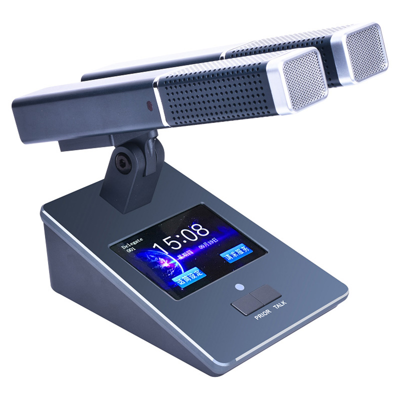 1、高清3.2寸TFT触屏,话筒的外观造型上采用金属氧化面板,简洁硬朗的外观设计表现出简约庄重的会议设备风格