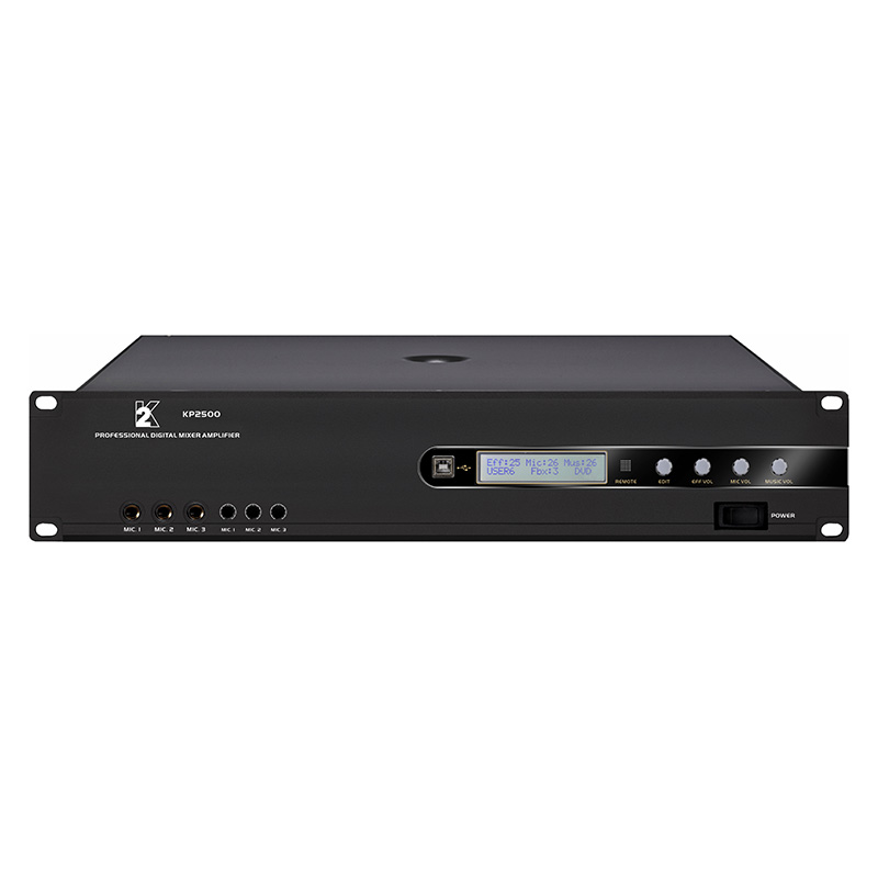 KP2500是一款高品质的DSP多功能合并式功率放大器;具备两路大功率输出,DSP数字调试、DSP数字混响及多种音源输入、输出。