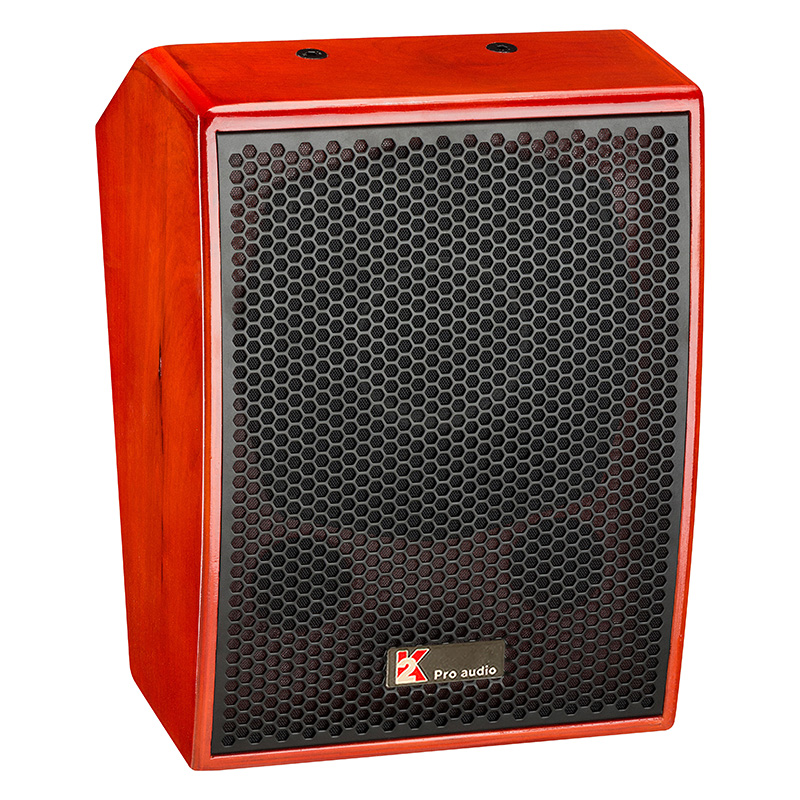采用同轴负载技术,由一只8”同轴全频扬声器组成。8”低频纸锥扬声器和一只1”高频钕磁压缩驱动器组成,高音号角覆盖角为120°(水平)X120°(垂直)。线性磁路中独立的低音和高音音圈互为反向,将磁路耦合产生的反向电动式相互抵消,有效的补偿了中高频阻抗,减少了失真,提高了效率。不对称梯型箱体外型设计,适合近场覆盖。为充分发挥扬声器的性能,音箱内部仅做简单分频,通过外接数字音响处理器频点优化。铝制圆高音号角,音色细腻,声像感好。箱体采用进口15mm桦木层夹板制作,嵌槽式结构,刚性好,无声染。专业为小型影院、影吧、酒店、咖啡厅、清吧、影咖、休闲会所、会议厅、背景音乐等扩声系统而设计的功能强大,性能优秀的同轴音箱。