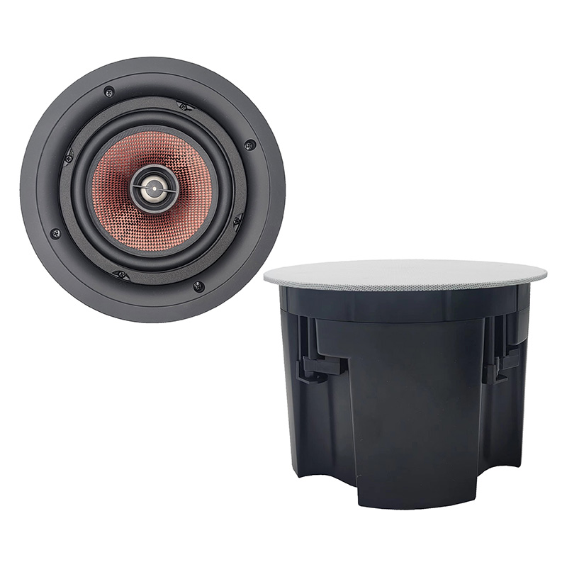 6.5英寸嵌入式影院全频扬声器,低频单元采用特制的carbon fibre(碳纤维)锥盘,具备重量轻、刚性强、动态大等特点,并具备良好的瞬态响应速度,特制的黑色KAPTON音圈骨架,最高工作温度 300 ℃,具有绝缘、质轻、强度高、耐高温、不易燃烧等特点 还有散热快、表面硬度高等优点;使用钛膜高音压缩驱动器,拥有更好的速度感和解析力,声音延展性更好,更加符合影院扬声器对声音的要求;高音单元为确保在高温情况下不易损坏,还添加了磁路冷却液。
