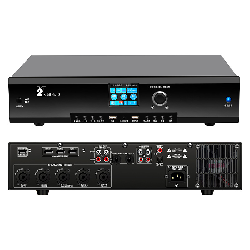 多功能7.1影K合并式DSP功放,内部采用足功率的D类多通道功率放大器,多种影院解码方式、优质的DSP卡拉OK效果器,可满足高标准的影K需求;机器可保持或调取10种模式,面板具备一块2.8英寸彩屏,显示各种调节内容,满足多种不同客户需求;产品广泛应用于各种高要求的私人影院、K歌沐足、民宿娱乐等场所。