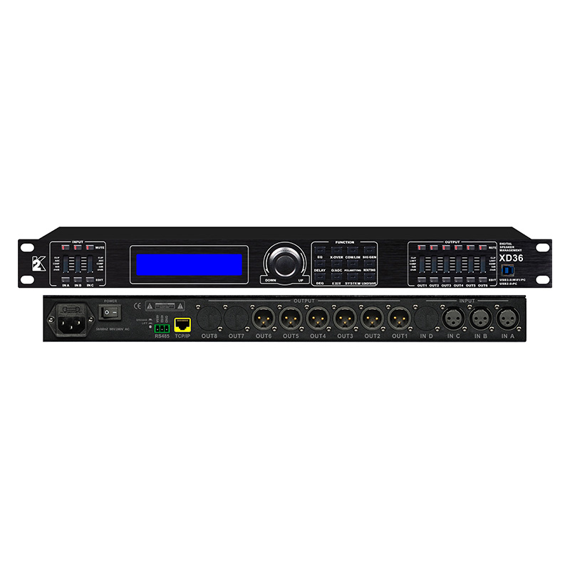 1、3路平衡式信号输入,6路平衡式信号输出;可灵活组合多种分频模式,高、低通分频点均可达20Hz~20KHz可灵活组合多种分频模式,高、低通分频点均可达20Hz~20KHz;